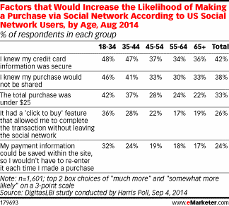 Der Grund für die niedrige Quote liegt im Misstrauen gegenüber den Plattform-Betreibern. 42 Prozent der Online-Nutzer wären offen für Social Commerce, wenn ihre Kreditkarten-Daten nicht in falsche Hände kämen, 38 Prozent würden abschließen, wenn der Kauf privat bliebe (also ohne großes Sharing-Brimborium). Daneben spielt auch die Höhe eines Kaufs eine wichtige Rolle. Weitere Faktoren müssten der Bequemlichkeit des Einkaufs dienen.